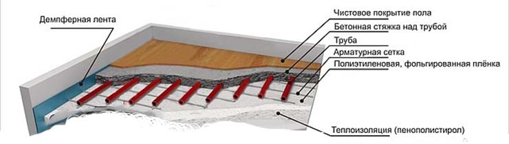 Для понимания сути вопроса "теплый пол" мы разместили ниже картинку по общему устройству последнего.