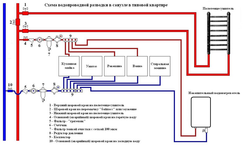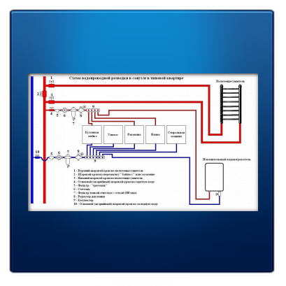 От того насколько как выполнен монтаж системы водоснабжения квартиры или дома напрямую зависит работоспособность всего оборудования, подключенного к ней. Схема водоснабжения квартиры или частного дома должна обеспечивать своевременную подачу воды из центрального водопровода во все точки подключения. Необходимо обеспечить достаточный напор воды для должной работы бытовой техники и сантехнического оборудования. ООО «ТЕПЛОВЕНТХОЛОД» применяет три основополагающие схемы разводки системы водоснабжения в квартире или частном доме. Первая схема называется - тройниковой или последовательной, вторая – коллекторная, а третья есть смешанный вариант первых двух. Ниже представлены схемы перечисленных систем.